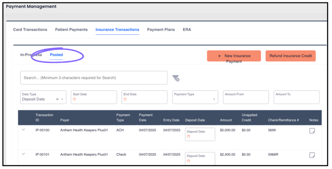 5. After everything is reviewed, click "Post". This will create a payment in the Insurance Transactions tab of Payment Management in the "Posted" section. The payment can be accessed there or from the ERA tab by selecting "Review Payment".