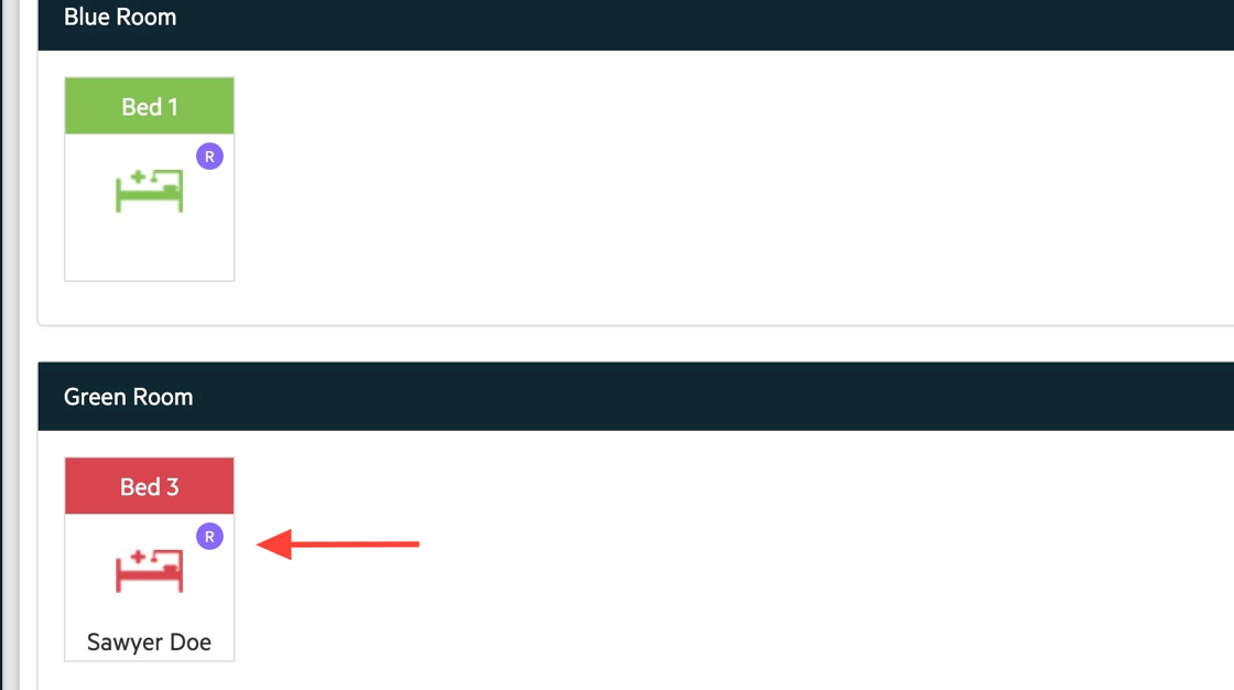 5. Once Reserved, the bed will display a purple "R" to indicate the bed is reserved.