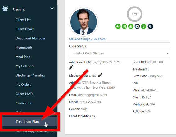 Or select the "Treatment Plan" section under the Client tab of the left hand menu.